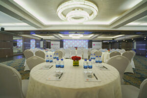 The hotel features 135 well-appointed rooms and suites, including categories like Executive, Premium, Club, Mini Suite, Deluxe Suite, and CP Suite. Room sizes range from 245 sq.ft to 1800 sq.ft, catering to various preferences and budgets. Amenities include free Wi-Fi, flat-screen TVs, minibars, and 24-hour room service.